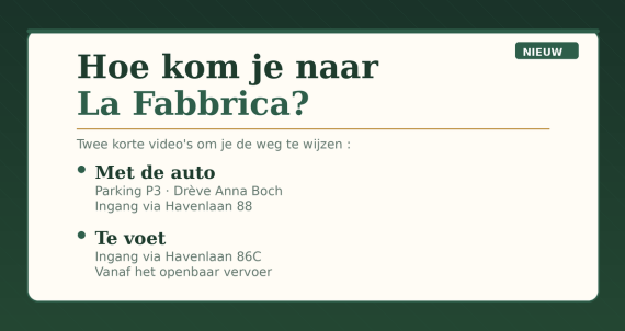 Tour & Taxis kan de eerste keer wat verwarrend zijn! We filmden twee korte video's om je de weg te wijzen naar La Fabbrica, met de auto en te voet.